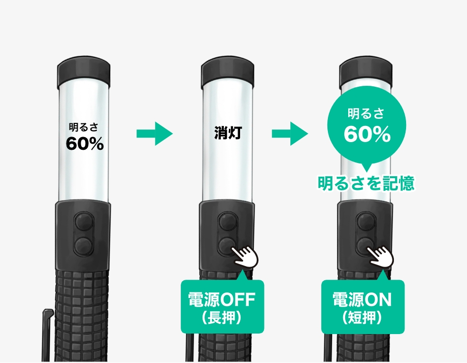 電源を切っても前回使用した明るさを記憶し調光の手間を省きます。