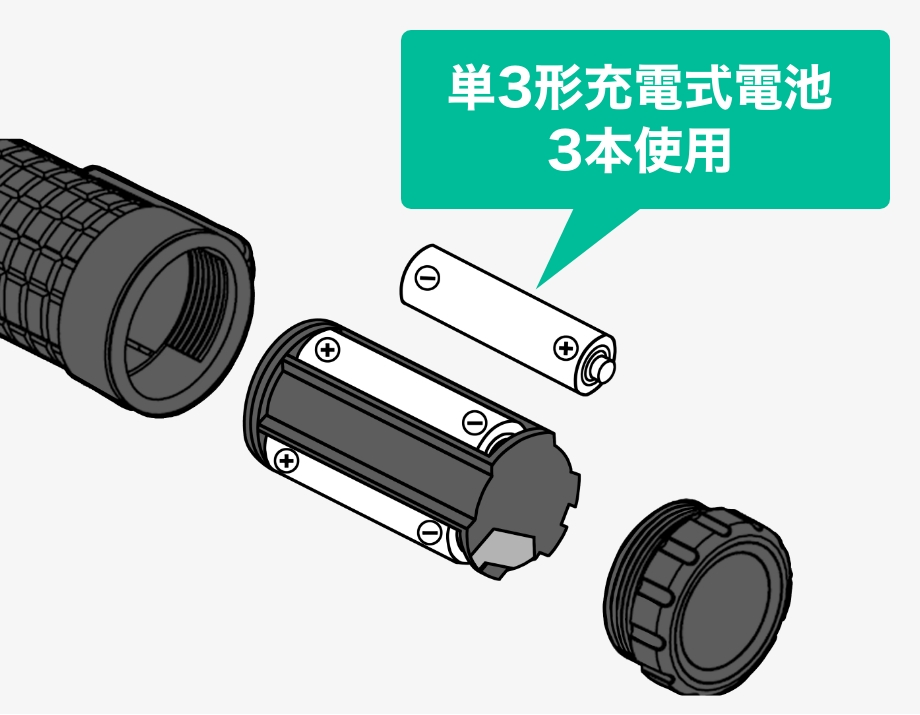 リチウムバッテリーは平均3年が寿命とされていますが、充電式電池駆動式を採用することにより電池を交換することで長期にわたり、ご使用いただけます。