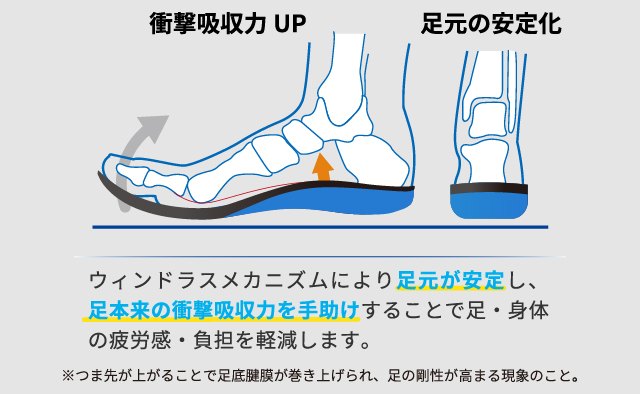・ウィンドラスメカニズムにより足本来の機能が発揮され、足にかかる負担が軽減