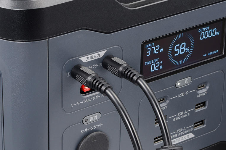 ACアダプターを2個同時に接続すると「ポータブル電源」本体への充電時間を短縮できます。