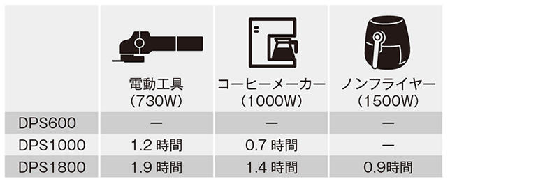 ※電動工具類、モーター類の一部は起動電流が大きく使用できないことがあります。