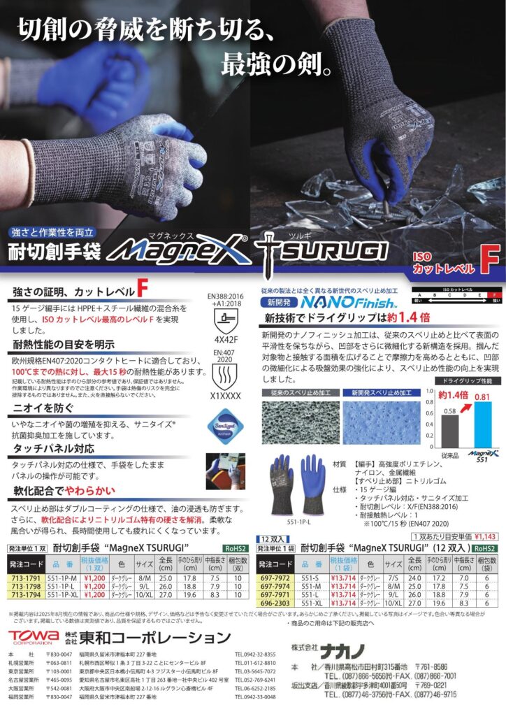 15ゲージ編手にHPPE+スチール繊維の混合糸を使用し、作業性の良さとISOカットレベル最高のレベルFの耐切創性を兼ね備えています。